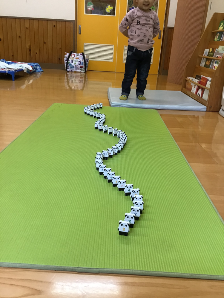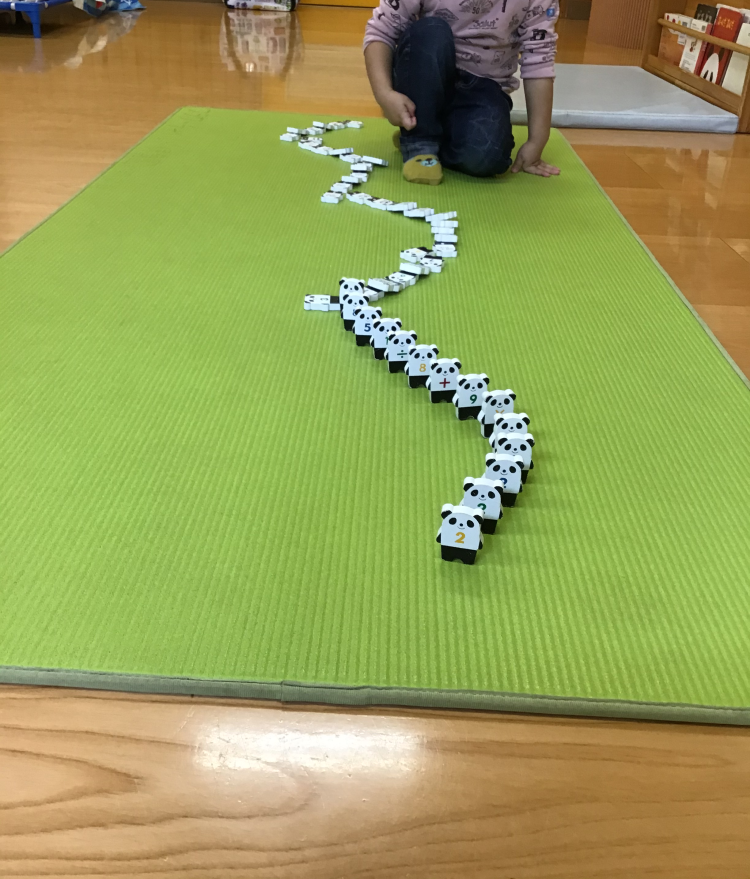 お部屋の中を見てみると…ドミノ倒しをしていました!