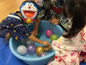 秋祭りだよ!ホーム > 秋祭りだよ!秋祭りだよ!更新日:2020年10月2日今日はみんなが楽しみに待っていた秋祭り! 秋祭り おめんをかぶって、ヨーヨー釣りをしたり、 ヨーヨーつり 他にも魚釣りや輪投げやおもちゃに…と、盛りだくさんのお店屋さん! お手伝いをしてくれた年長さんには、園長先生から特別プレゼントもありました♬ おてつだいありがとう券